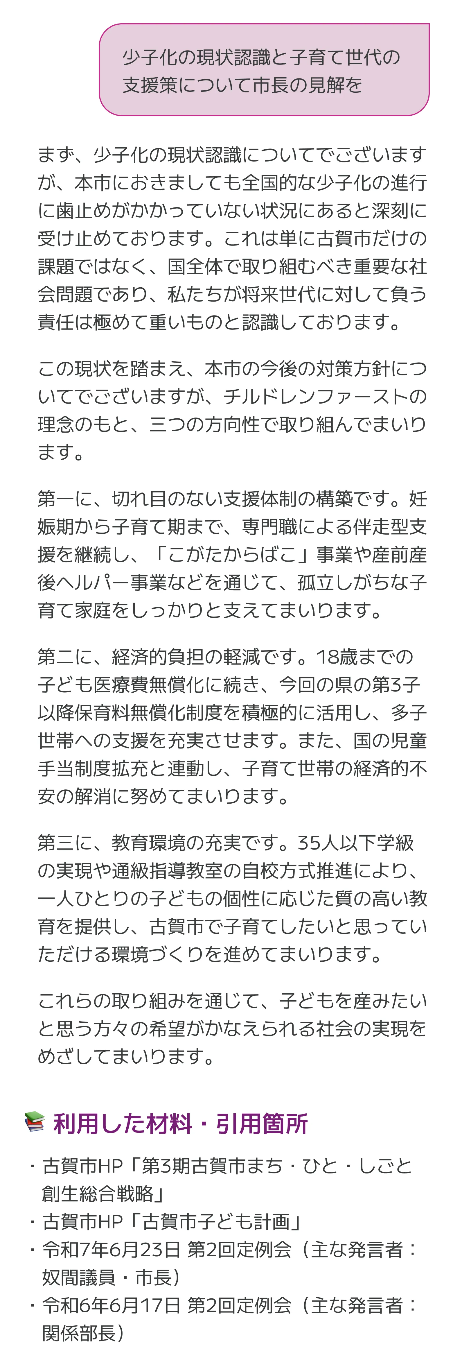自治体職員向け生成AIサービス「こがねAI」。古賀市に正式採用され、日常業務で利用されています。職員の声から議会答弁作成や来賓挨拶機能など、現場が必要とする機能を追加開発してきました。